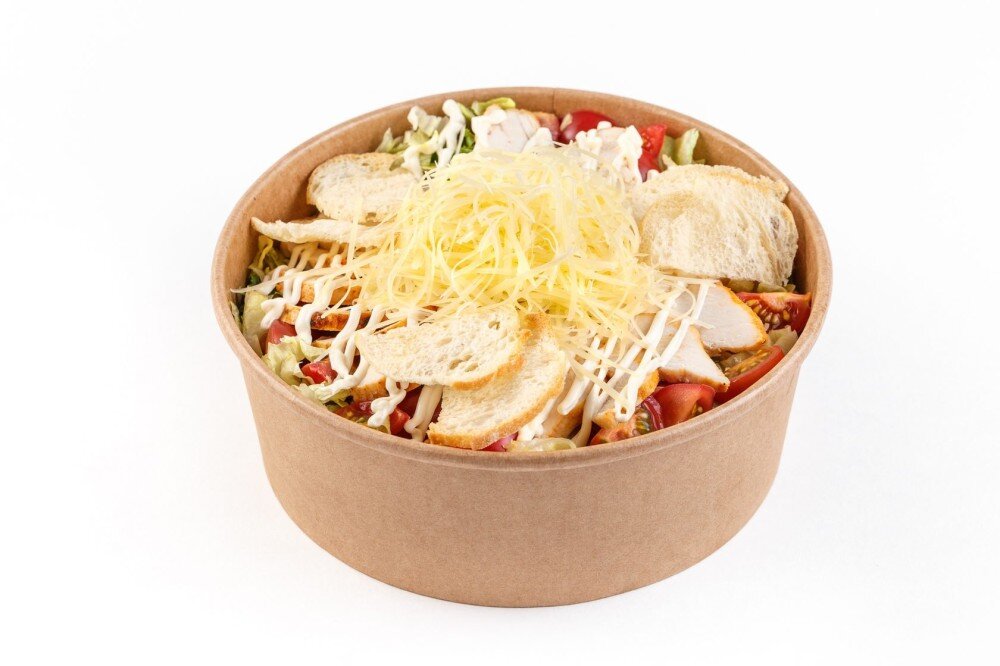 Салат "Цезарь" представляет собой гармоничную композицию из хрустящих листьяев свежего айсберга и ароматного куриного филе. Сочные помидоры черри и перепелиные яйца добавляют блюду яркие акценты. А завершающий штрих композиции - тертый пармезан и наш фирменный соус вместе с легкими, как воздух, сухариками.